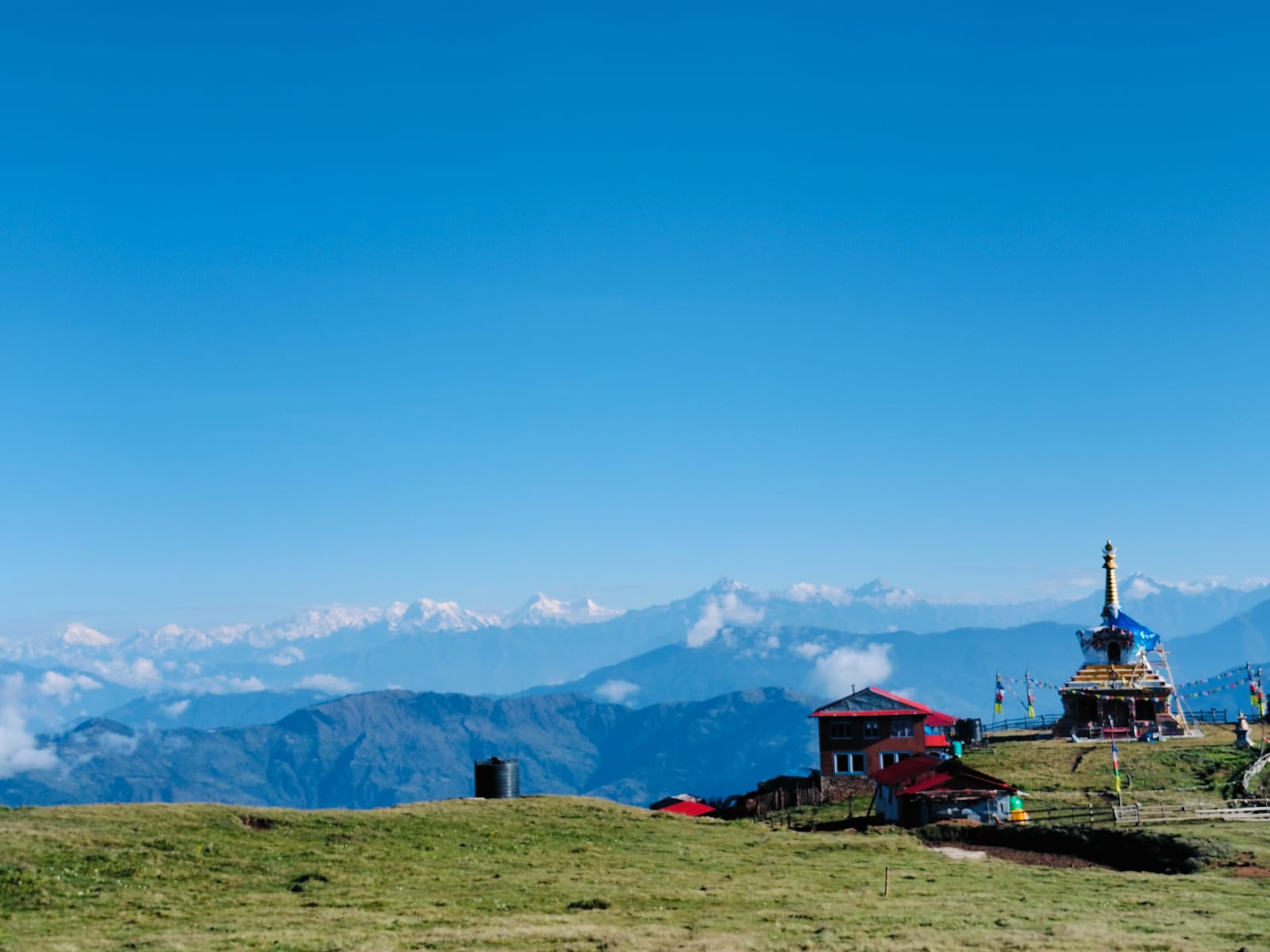 Today marks the first day on foot and the actual walk. The trail leads through emerging mountain paths, initially muddy as construction continues, gradually revealing stunning vistas of the Numbur Himalayan range. As you climb higher, the peaceful village of Jhapre awaits, perched dramatically on a ridge overlooking deep valleys and crowned by views of Mount Everest itself.